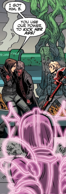 Faith lifts him. “I got him, B. You use our power to kick her ass!”