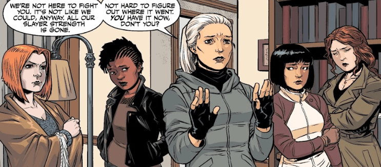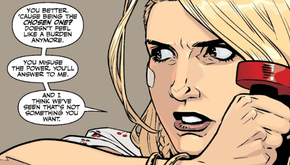 Buffy shakes her head. “Hold on. When I shared the power, part of the reason was because it made me just one of thousands. And I kind of wanted that at the time. Being ‘the Chosen One’ felt like a burden.”