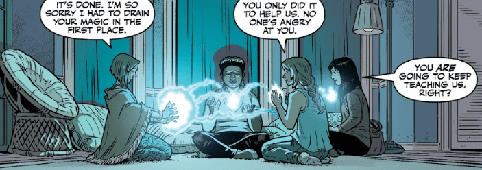 The Coven member places a hand on her shoulder. “So? I’m Black. You’re Jewish. There’s no guarantee we won’t be persecuted for that either. Is that a reason to stop being who we are? Who we want to be?”