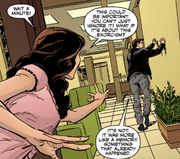 Fred shouts after him. “Wait! This could be important. You can’t just ignore it! What if it’s about this exorcism?”