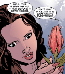 Fred straightens. “Well, this is easy. We kill the flower now before it gets bigger like in your vision.”