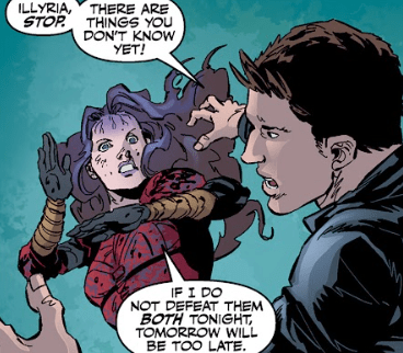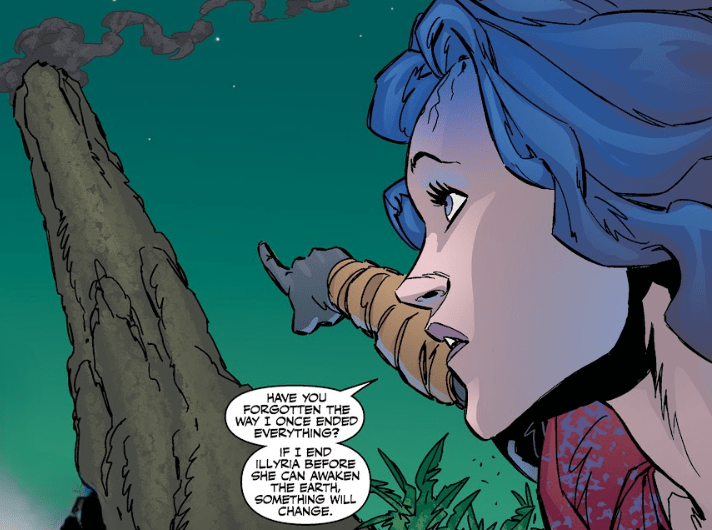 “Have you forgotten the way I once ended everything?” she says. “If I end Illyria before she can awaken the Earth, something will change…”