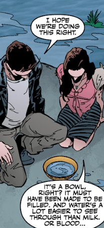 “It’s a bowl, right?” Fred reasons. “It must have been made to be filled. And water’s a lot easier to see through than milk. Or blood.”