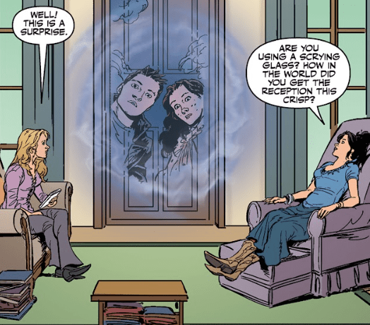 “Interesting,” Angel notes. He turns to Fred, worry creeping in. “Looks like we already managed to change history a little bit.”
