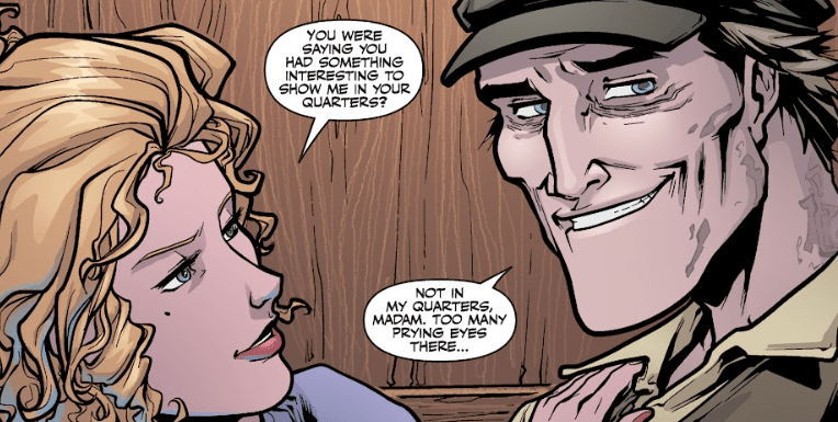 “Perhaps. But it is certainly more pleasant now that you are here with me.” Darla takes a step toward the deckhand, a small smile on her lips. He’s flattered and agrees to accompany her below.