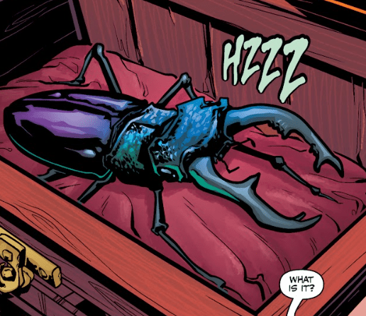 By the time Angel turns into the room, Fred has already removed the brown box from its hiding place and opened it. She’s stunned by what’s inside: a beetle. A very large beetle.