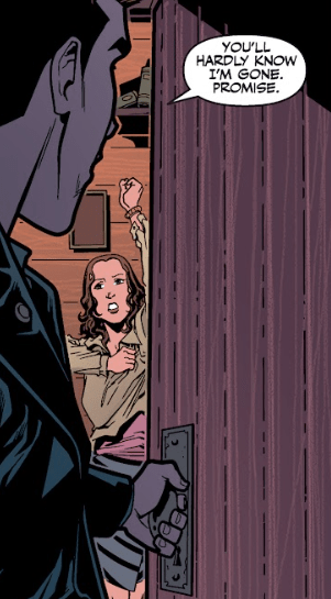 “You’ll hardly know I’m gone. I promise,” he tells her and then leaves her.