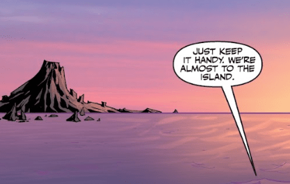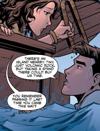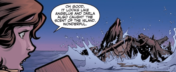 Angel immediately gives her a solution. “There’s an island nearby. Tiny, just volcanic rock, but taking a stand there could buy us some time.”