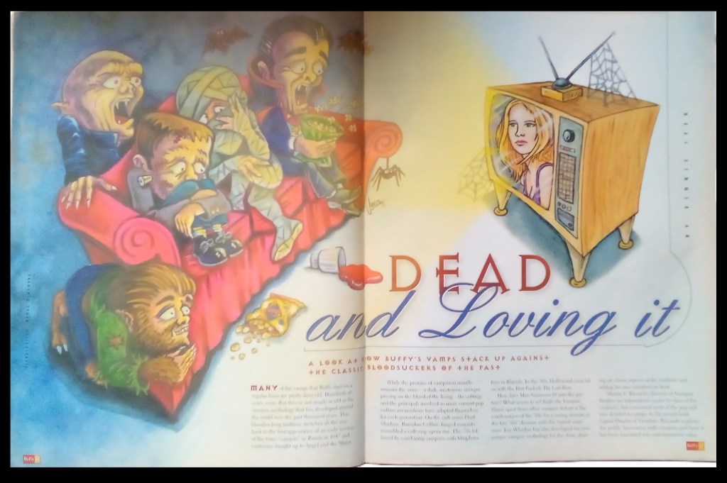 Dead and Loving It A feature by Vinnie Iyer about Vampires in popular culture, referencing the performances of the various vampires in cinematic and television history. There’s a really cute illustration in it’s introduction, although the only credit simply reads “James 99”.