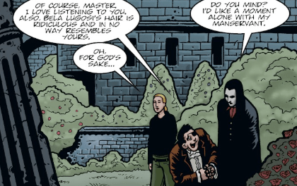 Buffy and two fellow Slayers stormed the crumbling stronghold of the legendary Count Dracula, cutting through his thralls in a bid to rescue Xander, who had once again fallen under the vampire’s hypnotic sway. They found him dressed as a loyal manservant, bowing and bustling with unnerving devotion. Dracula greeted Buffy with theatrical disappointment, lamenting how the centuries had reduced him from feared monarch to punchline. He warned her that even the greatest warriors become antiquated, their legends fading into mockery.
