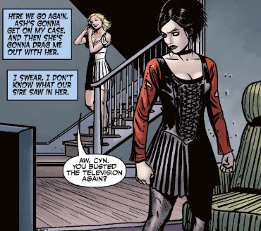 After vampires were exposed and folded uneasily into mainstream society, Cyn found herself chafing under Harmony Kendall’s new rules — no feeding, no hunting, no being the creature she had been made to be. She felt declawed, domesticated, denied the thrill that once defined her. Her roommate Ash, meanwhile, revelled in the attention. Humans flirted with danger now, drawn to vampires like moths to a flame, and Ash basked in it. They went clubbing together, neon lights and pulsing music blurring the edges of the night. When a man approached them, eager for the novelty of a vampire encounter, Cyn lured him into an alley and drained him dry, savouring the forbidden rush.