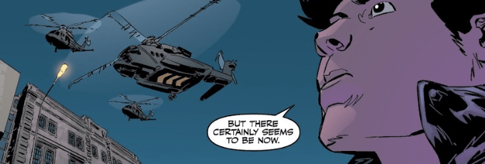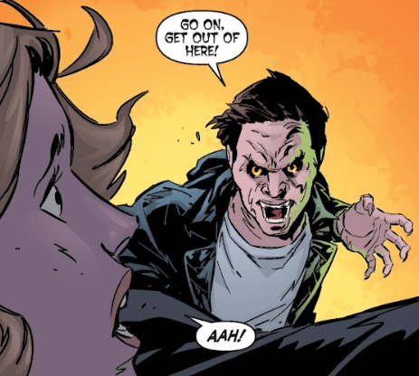 Another sigh. “Then I guess it’s up to us, as usual.” He races towards the officer, pulls her free from the vines. She looks at him with gratitude, but Angel just turns, his vampire features out, and snarls at her to run.