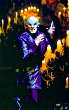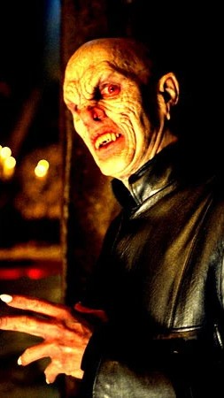 What did the producers have in mind for the Master? The original concept of the make-up was long, greasy hair or long, romantic kind of hair. I talked them into keeping a bald head, but I couldn’t talk them out of the full-face make-up. It’s a little more monster-ish than Nosferatu is, but it’s there. The image is definitely connectible.