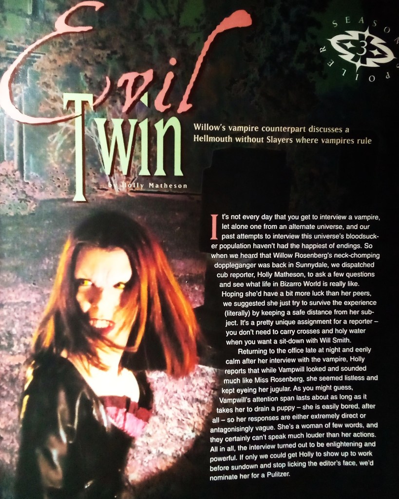 Evil Twin by Holly Matheson A fictional interview with the vampire version of Willow.
