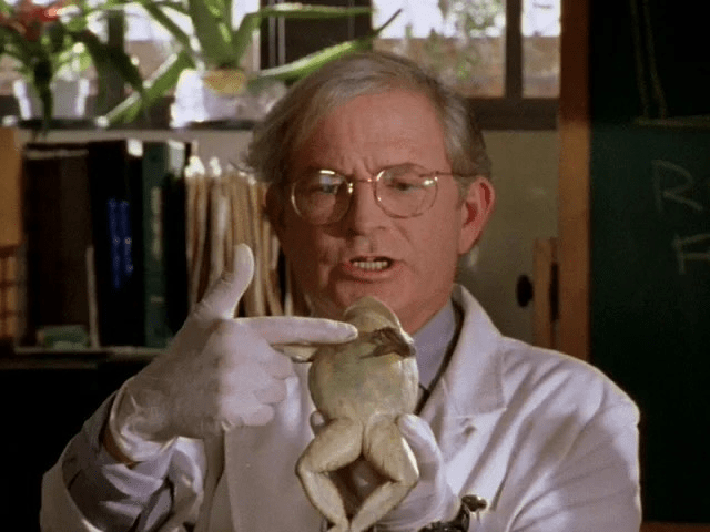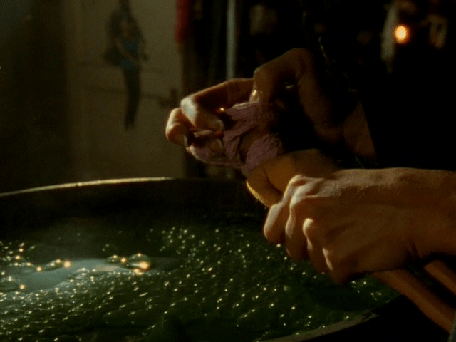 22:31 : Despite the spell calling for ‘Eye of Newt’ as per Giles, Xander and Willow go for a frog instead.