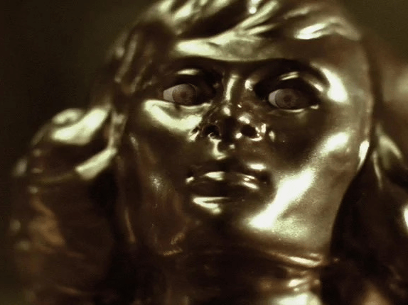 44:22 : And the reveal that Catherine is stuck in the cheerleading trophy! Oz notices it’s eyes moving in Phases and a script note in Doomed specifically mentioned that the statue had survived the destruction of the High School in Graduation Day.