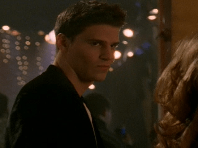 7:30 : By Buffy’s reaction, we can assume that this is the first time she’s seen Angel since The Harvest. She’s clearly dropped her guard around him, as has he around her. Xander and Willow meet Angel for the first time.