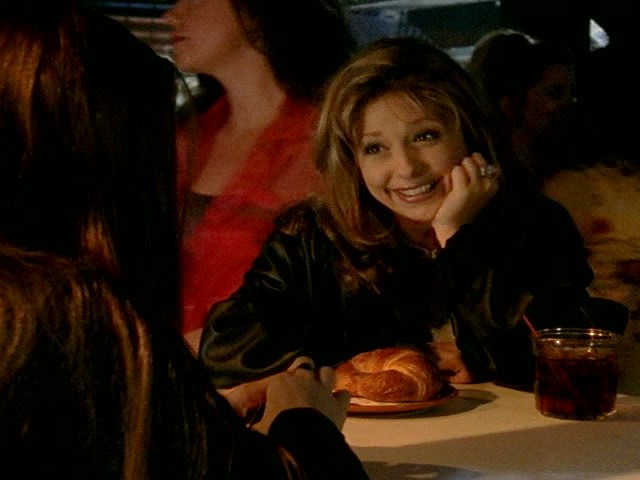 7:39 : Willow makes a point of mentioning Angel’s jacket, which he gave to her in the last episode. Buffy’s reactions to Angel suggests she’s come quite far in her crush since The Harvest.