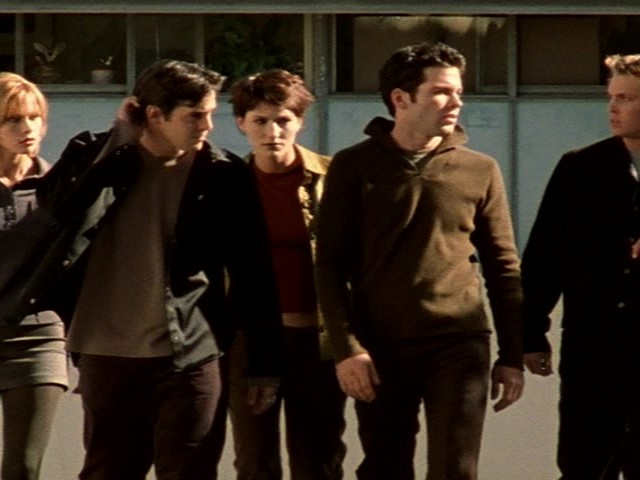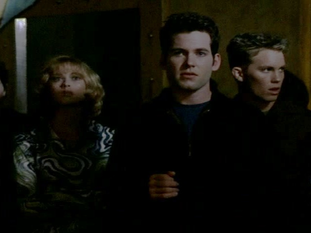 0:24 : We meet the four students who will form the Pack of the title. They are named as Kyle, Rhonda, Tor and Heidi. Only Kyle is named in the episode, with the others named in the credits or on the subtitles. Eion Bailey (Kyle) went onto roles in Once Upon A Time, Emily in Paris and The Stand (2020-2021). Michael McCraine (Rhonda) was also in Sliders. Brian Goss (Tor) had roles in NCIS, The Division and Bones. Jennifer Sky (Heidi) was a regular on Cleopatra 2525 and also appeared in Charmed.