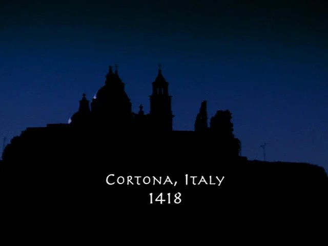 0:12 : …this one set in Cortona, Italy, in the year 1418, to be precise.