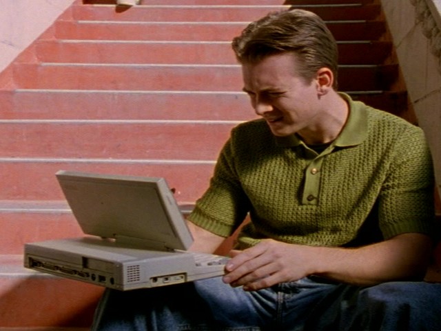 9:50 : Yes, youngsters, you’re eyes are not deceiving you. That is a laptop from the mid-Nineties.