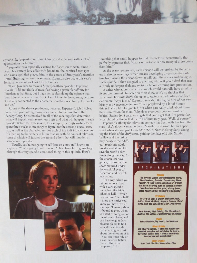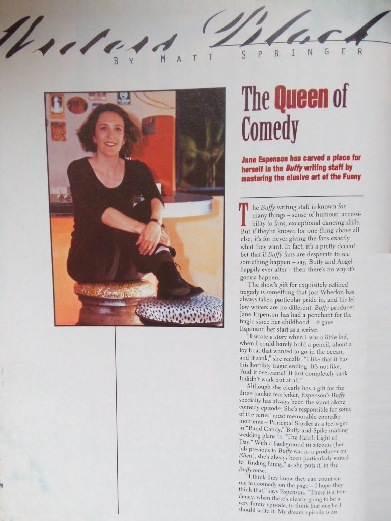 A brand-new regular feature, profiling and talking to the writers of Mutant Enemy. This issue: Jane Espenson.