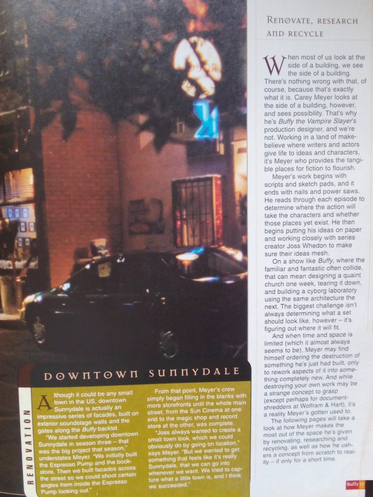 An article about the sets of Buffy and Angel and how they were reused and redressed for multiple different episodes.