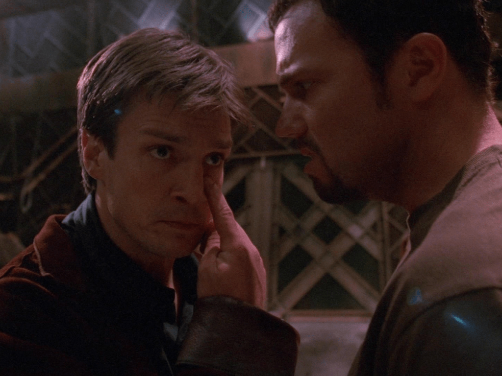 9:04 : Honestly, if you’re ever tempted to find the funniest episode of anything Mutant Enemy created, this episode is up there. The best bit is Mal turning to Jayne: “How drunk was I last night?” / “I don’t know. I passed out.”