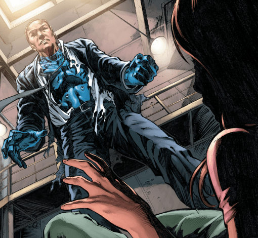 On Serenity, Kaylee’s workin’ when one of the Blue‑Gloved Men comes at her. He’s wearin’ some kind of blue suit under his clothes, somethin’ that ain’t natural. Before he can lay hands on her, Simon brains him with one of Jayne’s weights and yells for Kaylee to seal the doors.