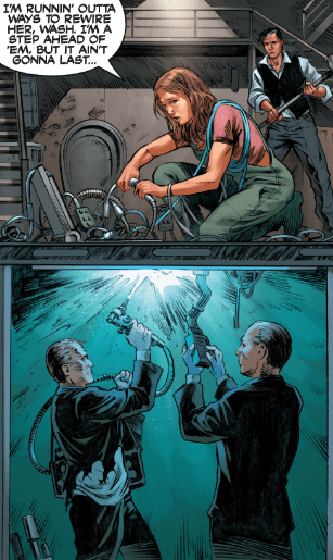 Out on the wreck, Mal finds not a scrap of the money Badger promised. What he does find is Lawrence Dobson — armed, armoured, and mad as a cornered rattler.