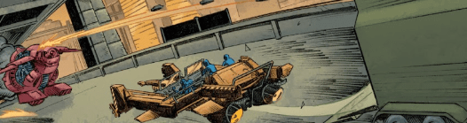This marks the first appearance of Serenity’s new Mule, a larger antigravity vehicle. The previous Mule was damaged, possibly beyond repair, during War Stories.