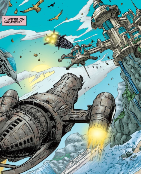 Serenity’s crew lights out for Pelorum — a resort world so shiny it near blinds a soul just lookin’ at it. They rent themselves a suite costin’ a thousand credits a night, a place with floors polished enough to see your future in. For the first time in a long while, they breathe easy.
