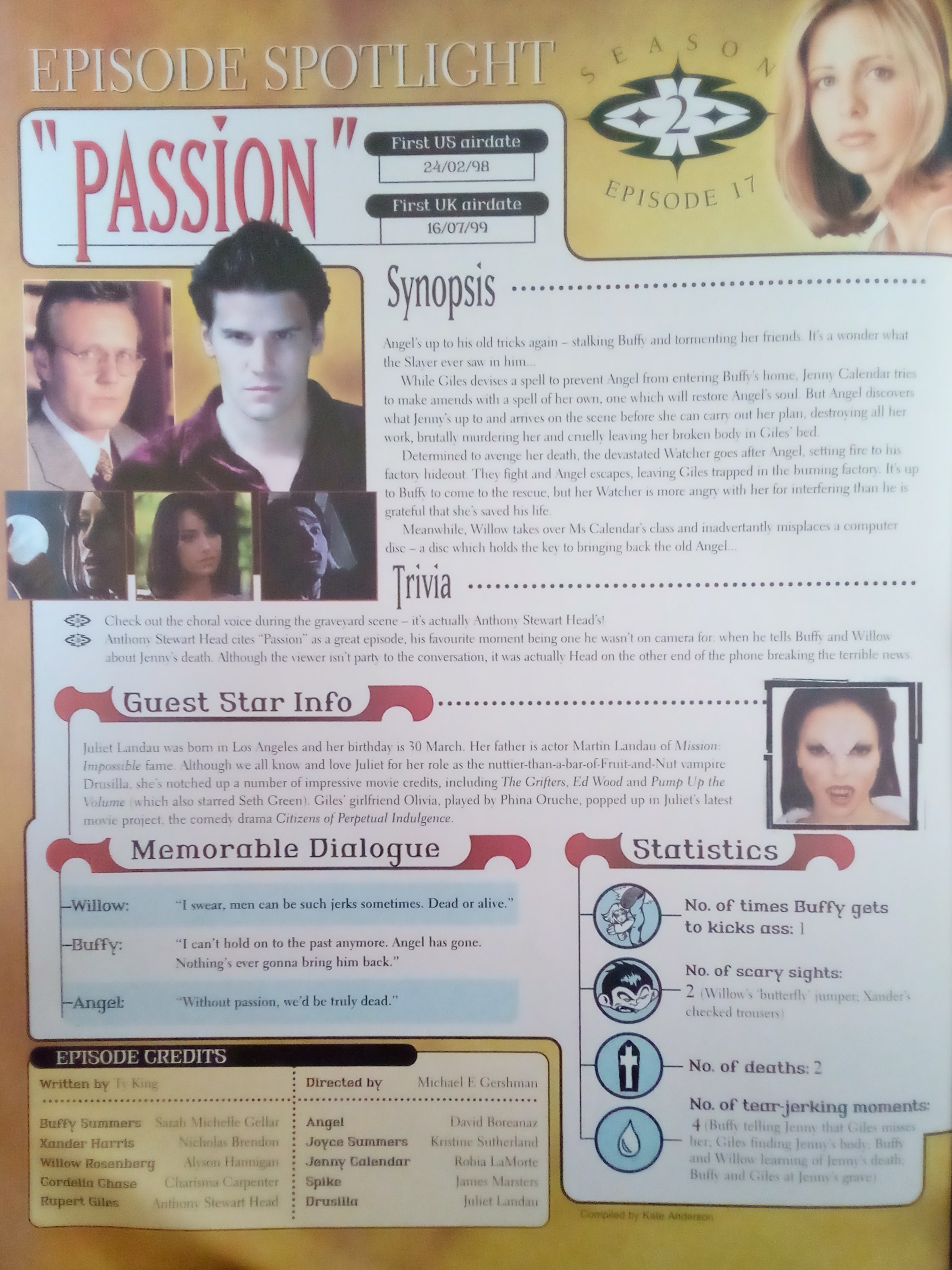 Elsewhere, tucked away, a reminder that episode 8 of Buffy’s current season, would apparently be the last we would see of Anthony Stewart Head as Giles.