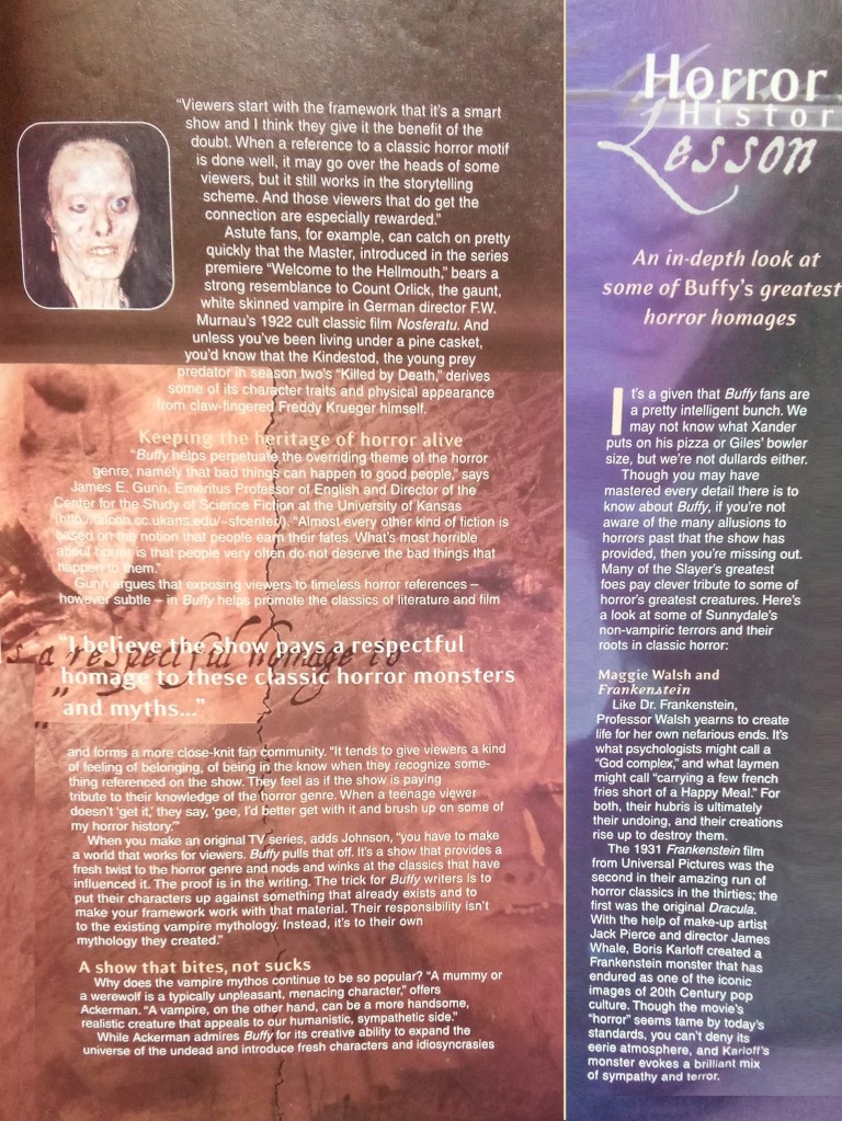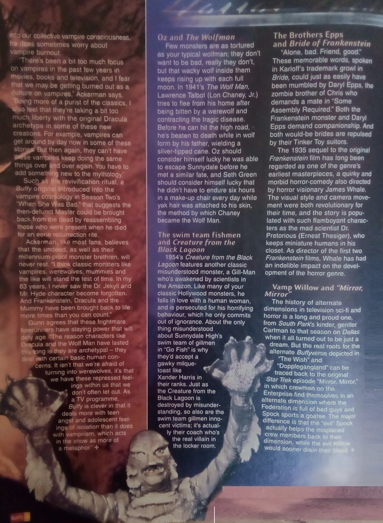 Vampires, zombies, werewolves… Buffy has featured all of the classic scary beasties at one time or another. A special look at how the series takes these classic horror figures and changes them to fit the Buffy universe.