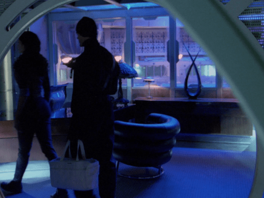 27:23 : As she’s escorted through the Skyplex, Zoe walks through Niska’s office, as seen in The Train Job.