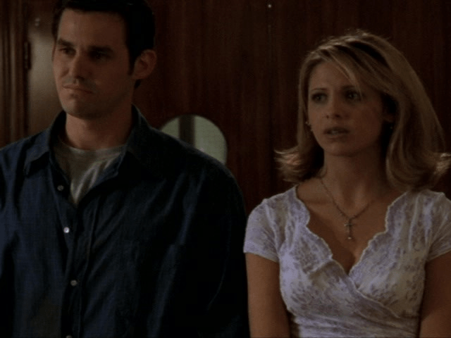 1:01 : Angel denies being jealous of Buffy’s dance with Xander, which occurred in When She Was Bad. His actions later in the episode give his true feelings away however…