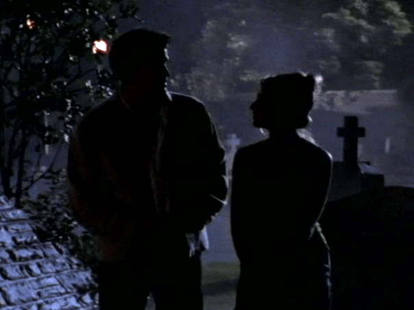 43:13 : A brief snippet of Buffy and Angel’s love theme, titled Close Your Eyes, plays alongside Christophe Beck‘s score as the pair hold hands through the graveyard. It’s just a hint, but it’s there.