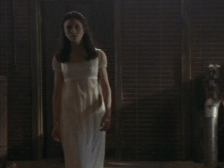 6:30 : The paramour enters: Drusilla glides into the room and everyone turns. Daughter of Hollywood actors Martin Landau and Barbara Bain, Juliet Landau had appeared in a few small roles, but Buffy was her notable break. Since Buffy, she has reprised the role, both on Angel and the audio series Slayers. Remarkably, she has never aged and still looks as striking now as she did then. And that’s not an exaggeration…
