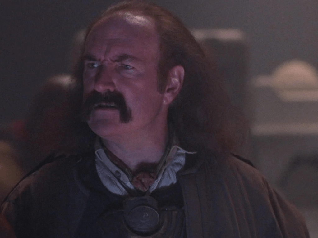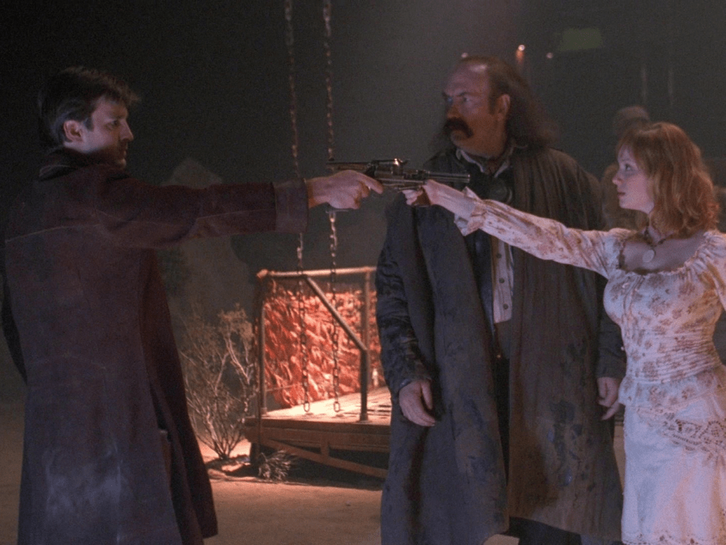 13:09 : Durran Haymer is Saffron’s intended target: he is a rich collector of war artefacts and weapons, with a large estate in the skies of Bellerophon. He has a huge secret however: it seems he was also Alliance and was a biological weapons expert during the war, killing populations with weapons that left their treasures intact. He’s essentially the ‘Josef Mengele’ of the Alliance. Of course, we only have her word for that. He’s played by Dwier Brown, who was in Field of Dreams (1989) with Kevin Costner.