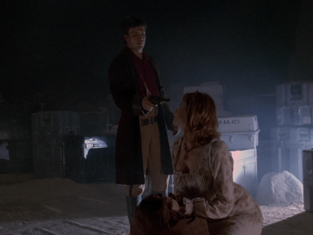 11:38 : In Out of Gas, upon meeting Mal, Inara warned him that he would never call her a ‘whore’ again. He does so again here, and she rolls her eyes in frustration (“Well, that didn’t take long.”) It does seem to be his favourite insult when it comes to women as he yells it at Saffron later.