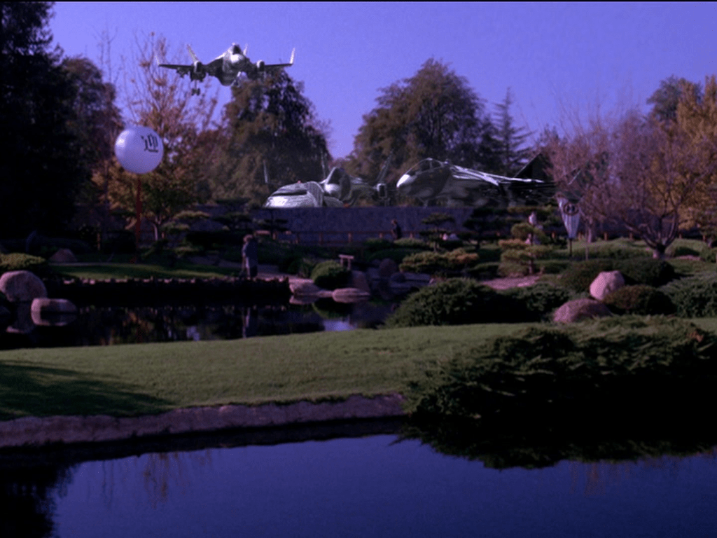 31:33 : The lush green of the Bellerophon estate is actually the Tillman Water Reclamation Plant in Van Nuys, Los Angeles. It was used as the original Starfleet Academy exterior and some alien planets from Star Trek‘s The Next Generation through to Voyager. Due to the nature of the work there, there’s usually an unpleasant smell in the surrounding area.
