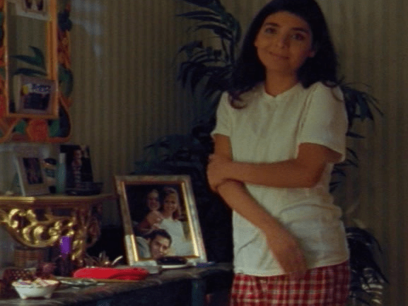 13:30 : The photo of Buffy, Xander and Willow that ‘Ampata’ holds up is seen several times throughout the series; a copy is seen on Buffy’s office desk in Season Seven.
