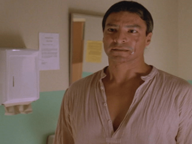 8:58 : There goes that theory. The bodyguard is clearly as surprised as the gang is! He’s played by Gil Birmingham, who later played Billy Black in the Twilight movie franchise .