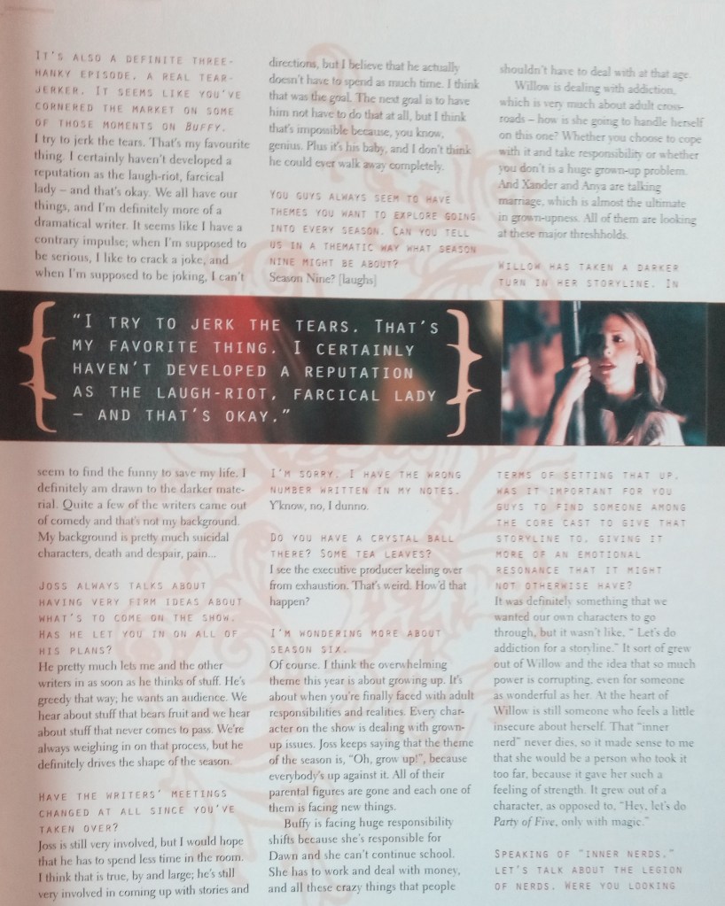 The big interview this month is Buffy‘s executive producer Marti Noxon, who talks all things Season Six and the fan response to some of the series’ darkest moments…
