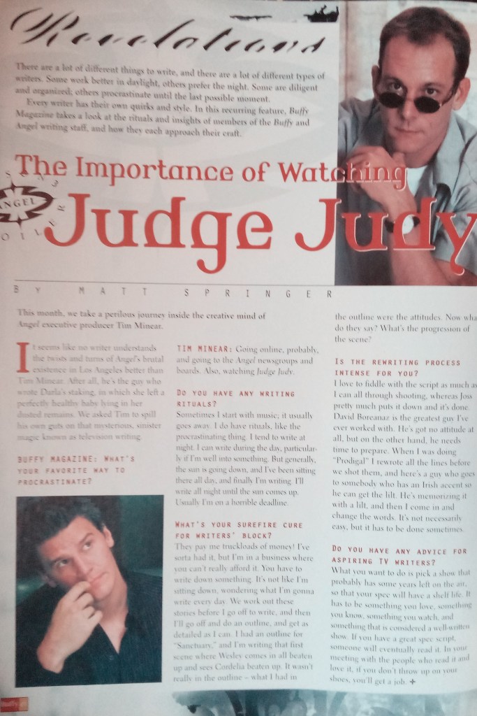 This issue Angel executive producer and showrunner Tim Minear on just why Judge Judy is important to his work…