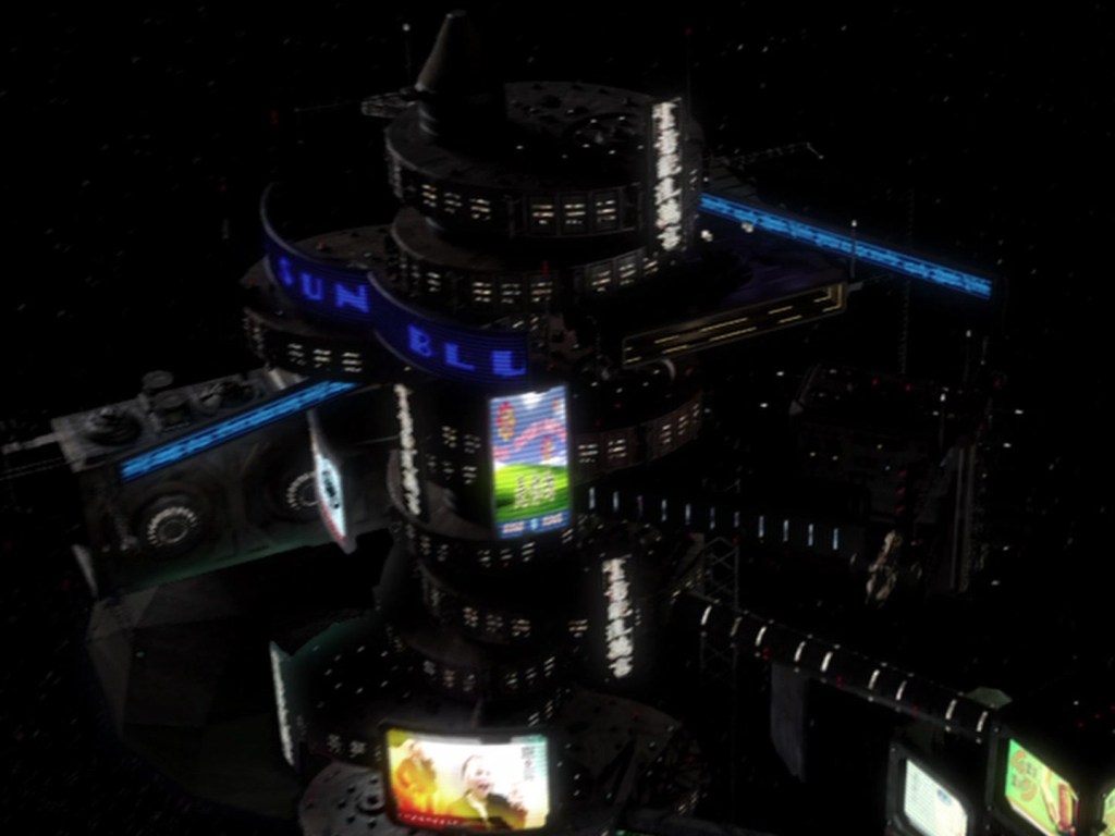 12:46 : There are advertisements for the Blue Sun Corporation on the outside of the space station.