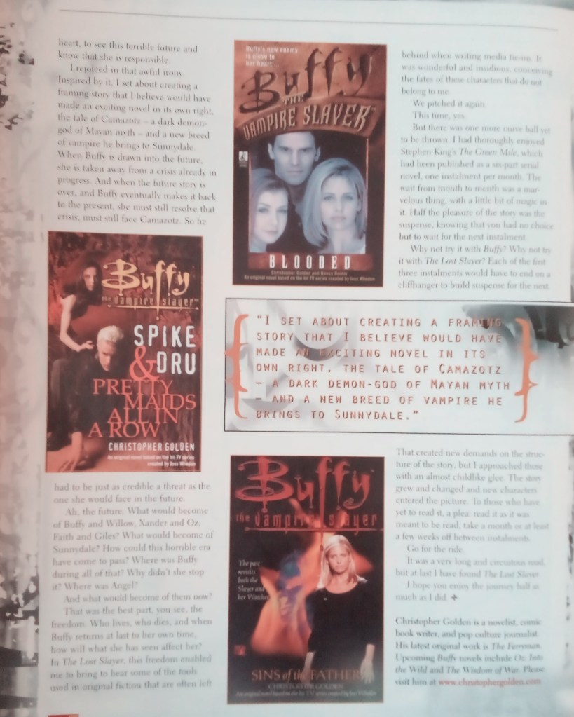 Buffy novelist, comic book writer and author Christopher Golden talks about his latest Buffy adventures, including the four-part mini series The Lost Slayer.