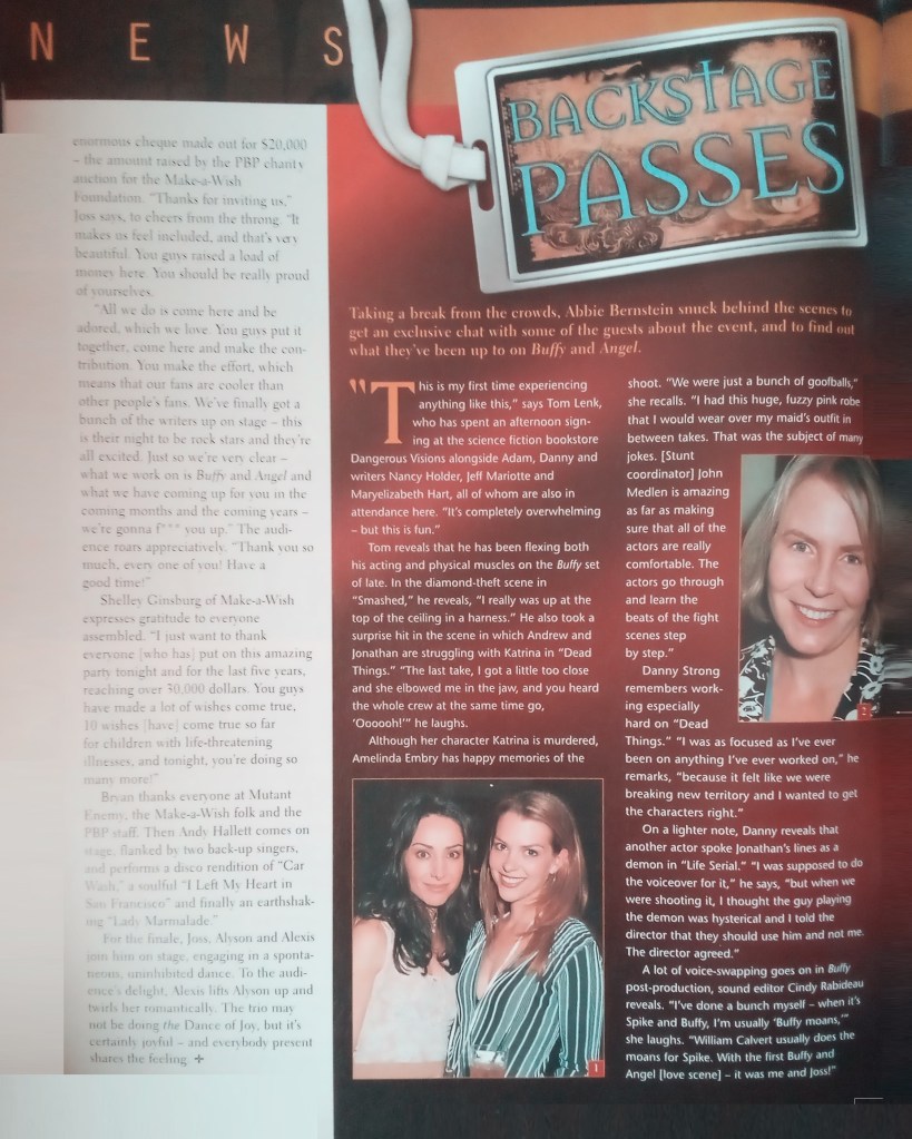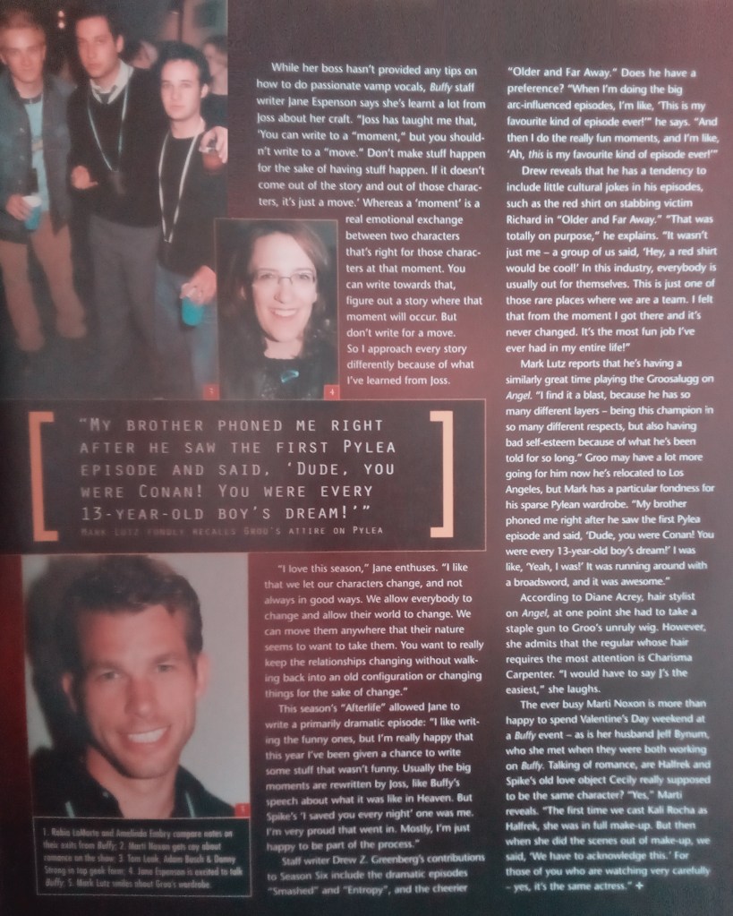 Of course, that was still three weeks away – and the magazine couldn’t say anything else about the episode apart from comment on location filming at the Six Flags Magic mountain theme park. It was also confirmed that the Firefly pilot had taken show creator Joss Whedon away from the finale completely – now, not only would he not direct it, but he wouldn’t write it either. But the other writers had the utmost faith in their abilities and Whedon himself said that Villains freaked him out ‘with the tears and excitement.’ Mutant Enemy script writer Steven DeKnight warned us all to trust the show’s producers. “I sure do,” he said, not sounding particularly sure of himself…