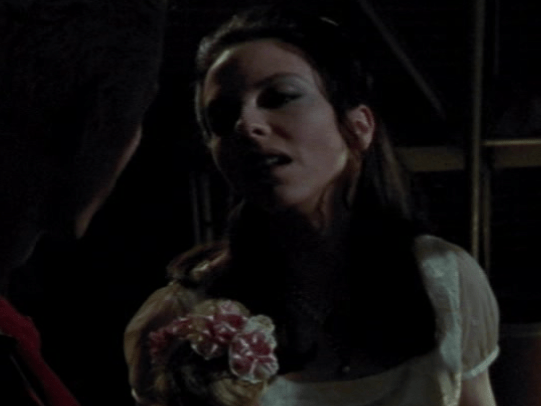 41:39 : As soon as he sees her, Oz’s eyes go wide and he stares. He then, aloud and to himself, asks his question from Inca Mummy Girl: “Who is that girl?”