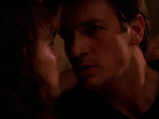 25:17 : Just after they kiss, Mal pauses. When Nandi asks him why, he says he’s just waiting to see if he passes out, a reference to Saffron’s lipstick in Our Mrs. Reynolds.